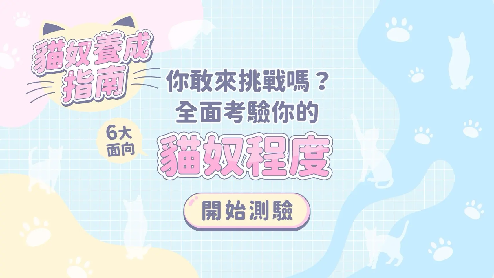 你敢來挑戰嗎? 預防醫療 貓咪從小到大的健康問題你真的懂嗎? 日常照護 什麼能吃?貓砂的挑選?每一項都有大學問⋯ 環境安全 什麼!這個會讓貓中毒?危機就在身旁 人貓社交 其實他超討厭你這樣!貓的行為好難猜 自我實踐 他的天性如何釋放?讓貓,成為貓 壓力管理 長期緊張會讓喵不舒服他的情緒你懂嗎? 3分鐘完成這份貓奴測驗 即可獲得專屬的貓咪照護指南 讓愛貓的你,真的懂貓 貓奴測驗 基本資料預防醫療日常照護環境安全人貓社交自我實現壓力管理 請輸入您的姓名電子郵件我想收到更多相關知識以及第一手的優惠資訊上一頁下一頁1. 我可以馬上想起我家貓咪的疫苗手冊在哪? 當然!這很重要 嗚~我要去找一下了2. 你覺得自己家貓需要定期健檢的必要性? (1-10分)01分 = 生病再去就好;10分 = 一年一次跑不掉3. 貓咪什麼時候開始打疫苗最好? 越早打越好 4週-8週大 8週-12週 3個月以上 貓咪不適合打疫苗,會有注射部位肉瘤風險4. 你記得貓咪驅蟲/疫苗時間的把握度? 完全不記得,憑運氣 清清楚楚,連日期都背得出來 我家貓咪不出門,沒有風險,所以不需要5. BUN, Crea, SDMA, T4, Glu 👈這些專有名詞我很熟悉 (1-10分)01分 = 完全看不懂;10分 = 都認得!也知道什麼意思!上一頁下一頁6. 你平常是怎麼掌握貓咪每天該吃多少的? 我有計算過熱量+固定秤重 大概抓份量,偶爾會秤 都用目測,碗空了就加 牠想吃就給7. 你對「貓每天要喝多少水」的掌握程度?01分 = 完全沒概念、自由他喝;10分 = 隨時能幫貓算 RER × 活動係數8. 我知道我家貓咪吐毛球的頻率 很清楚!我有在觀察、甚至大概知道一週幾次 偶爾注意到,但沒有特別記錄 完全沒概念,想到才會注意 一兩年沒吐過毛球了9. 如果要換新的貓砂盆,你會怎麼挑? 尺寸和深度,確保貓咪能自在轉身 我喜歡找有蓋子、貓咪可以安心出入的 價格優惠、折扣最多 沒特別研究,現場有就直接買10. 對於貓砂盆清潔,你自認的勤勞程度?01分 = 想到才清;10分 = 比自己洗碗還勤快上一頁下一頁11. 朋友來你家,看到你家客廳有幾個貓跳台,問:「為什麼要這樣擺,影響風水?」;你會怎麼回答? 這樣貓可以跳上去觀察環境,也有路線能撤退或躲藏 貓喜歡爬高,所以我就多放幾個架子讓牠活動 因為我買的家具比較高,剛好牠會跳上去休息 想增加牠的活動量,讓牠多跳跳運動 這題不適用在我家,我家沒有貓跳台12. 哪一種天然精油,對貓咪可能造成肝腎中毒、甚至呼吸困難? 茶樹精油 薰衣草精油 柑橘精油 以上皆是13. 什麼時候陪貓玩逗貓棒,能最符合牠的天性? 每天睡前 貓剛起床時 白天中午 隨機,看貓咪有沒有吵14. 你覺得你家環境的「貓友善度」?01分 = 完全沒設計,貓只能將就;10分 = 貓比人還舒適,每個角落都是安全堡壘15. 對「高處/可撤退動線」的重視程度?01分 = 沒想過,隨便放個貓窩就好;10分 = 完全依照「可觀察、可躲藏、可逃脫」規劃上一頁下一頁16. 以下哪個行為,最容易讓貓咪感到威脅? 蹲下,伸手讓貓咪聞 從正面把貓輕輕抱起 優先摸下巴、耳後 每天固定時間陪玩17. 如果你直直盯著貓咪的眼睛看,牠可能會怎麼解讀? 覺得你很專情 🥰 覺得被威脅或挑釁 😾 完全沒差,貓不會注意 覺得你要餵牠東西18. 當貓咪不想再被摸時,下列哪個不是常見的壓力訊號? 飛機耳 搖搖頭、舔鼻子 突然不動、縮起來 翻肚子打滾19. 當貓拒絕互動時,你能忍住「不硬要」的自制力?01分 = 完全忍不住,一定要抱一下;10分 = 完全尊重,貓怎樣都行20. 你覺得你和貓之間的「信任度」?01分 = 牠還在懷疑我這個室友;10分 = 我是牠全世界最信任的人上一頁下一頁21. Puzzle feeder(益智餵食玩具)的主要作用是模擬狩獵流程中的哪個階段? 定位 撲上 備餐 擊殺22. 玩逗貓棒時01分 = 我的貓不愛玩,就算我把它甩在貓身上;4分 = 左右&上下甩甩,像在陪貓運動;10分 = 我是專業的逗貓棒玩家,會模擬成貓的獵物23. 我的貓很愛咬我的手腳><01分 = 從不;10分 = 每天24. 下列哪一種「玩具軌跡」最能刺激貓咪的狩獵慾望? 在空中高速轉圈,像小鳥一樣飛翔 直線往前跑,模擬獵物逃跑 忽快忽慢、鑽洞躲藏、突然出現 不動,放在地上25. 我知道為什麼要在飯前先用逗貓棒玩一玩。是因為… 讓牠更快餓 模擬狩獵,滿足天性 主人比較有空 順便幫貓減肥上一頁下一頁26. 長期壓力最可能引發下列哪一種疾病? 自發性膀胱炎(FIC) 骨折 腸胃道問題(嘔吐、軟便、便秘) 貓瘟27. 在哪裡餵食對貓咪來說比較安心? 門邊或窗邊 在貓的水碗旁 安靜、可撤退、不會被打擾的角落 跟我在同個地方用餐28. 貓咪不吃飼料,想提升貓咪的進食意願的優先策略是: 灑凍乾、肉鬆提升香味 明後天,全換成吃適口性較好的新飼料 微溫不超過體溫、攪拌增香、同系列口味微調 用手親餵,並輕聲鼓勵貓咪很棒29. 當貓咪一換新飼料就拒吃,最可能的原因是? 適口性不好 缺乏過渡期,覺得陌生不安 主人忘了攪拌食物 碗太寬30. 我覺得自己看得懂貓咪壓力訊號的能力01分 = 完全不會分辨;10分 = 一眼就知道貓咪是不是正處在壓力情境預防醫療日常照護環境安全人貓社交自我實現壓力管理總分 上一頁 送出答案,查看結果